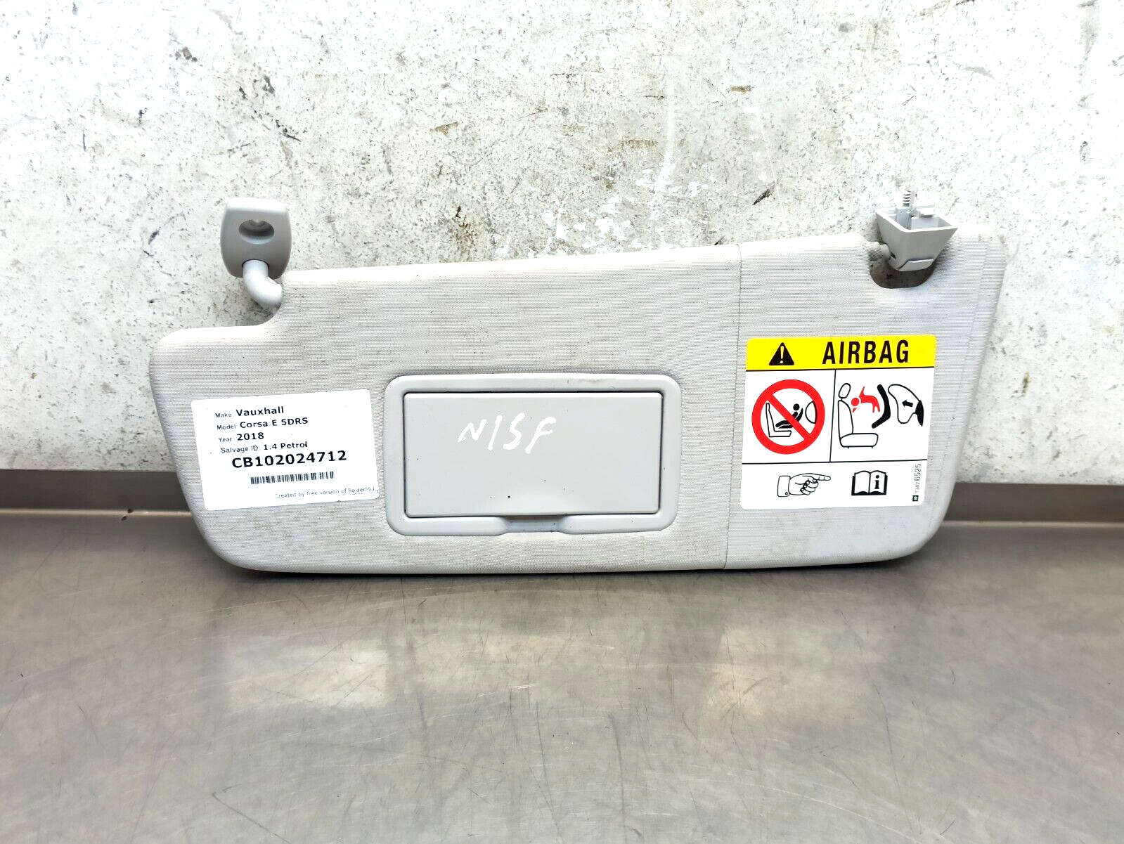 Vauxhall Corsa E 2015-2019 Front Sun Visor Passenger Side Front N/S/F 13431204