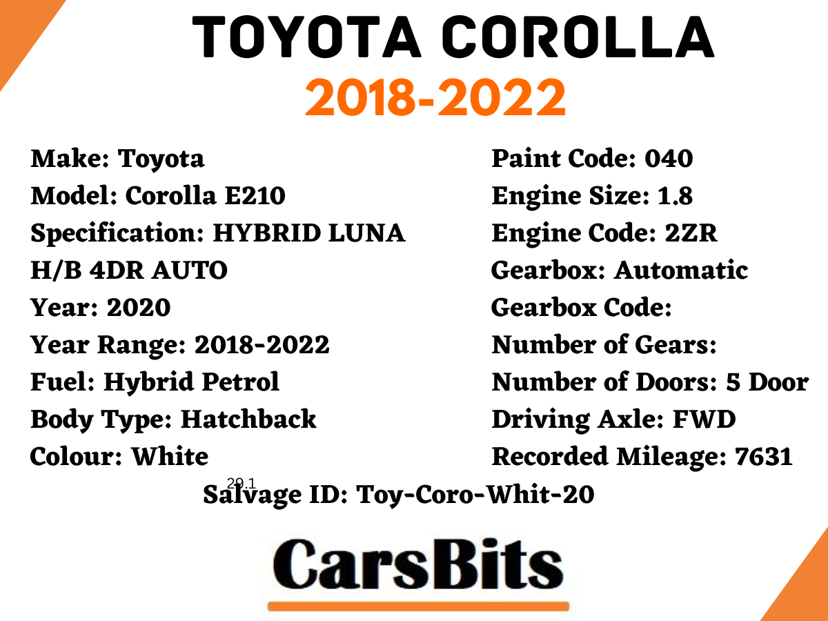 Toyota Corolla 2018-2025 Hatchback Back Panel Boot Floor Body Cut In White 040