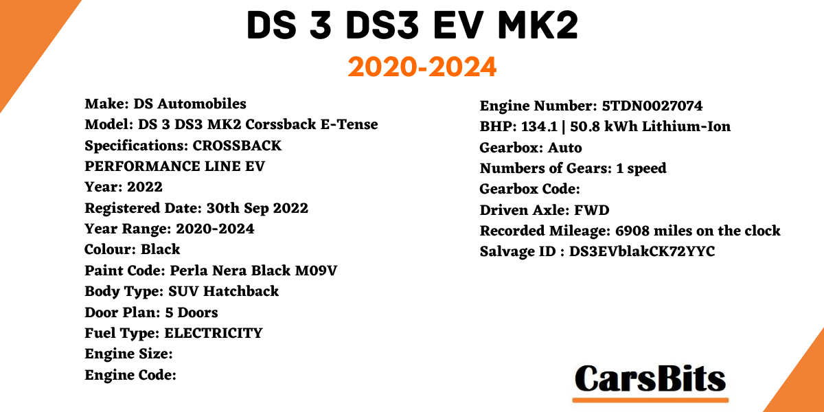 We are breaking this DS 3 DS3 EV MK2 2020-2024 for parts.