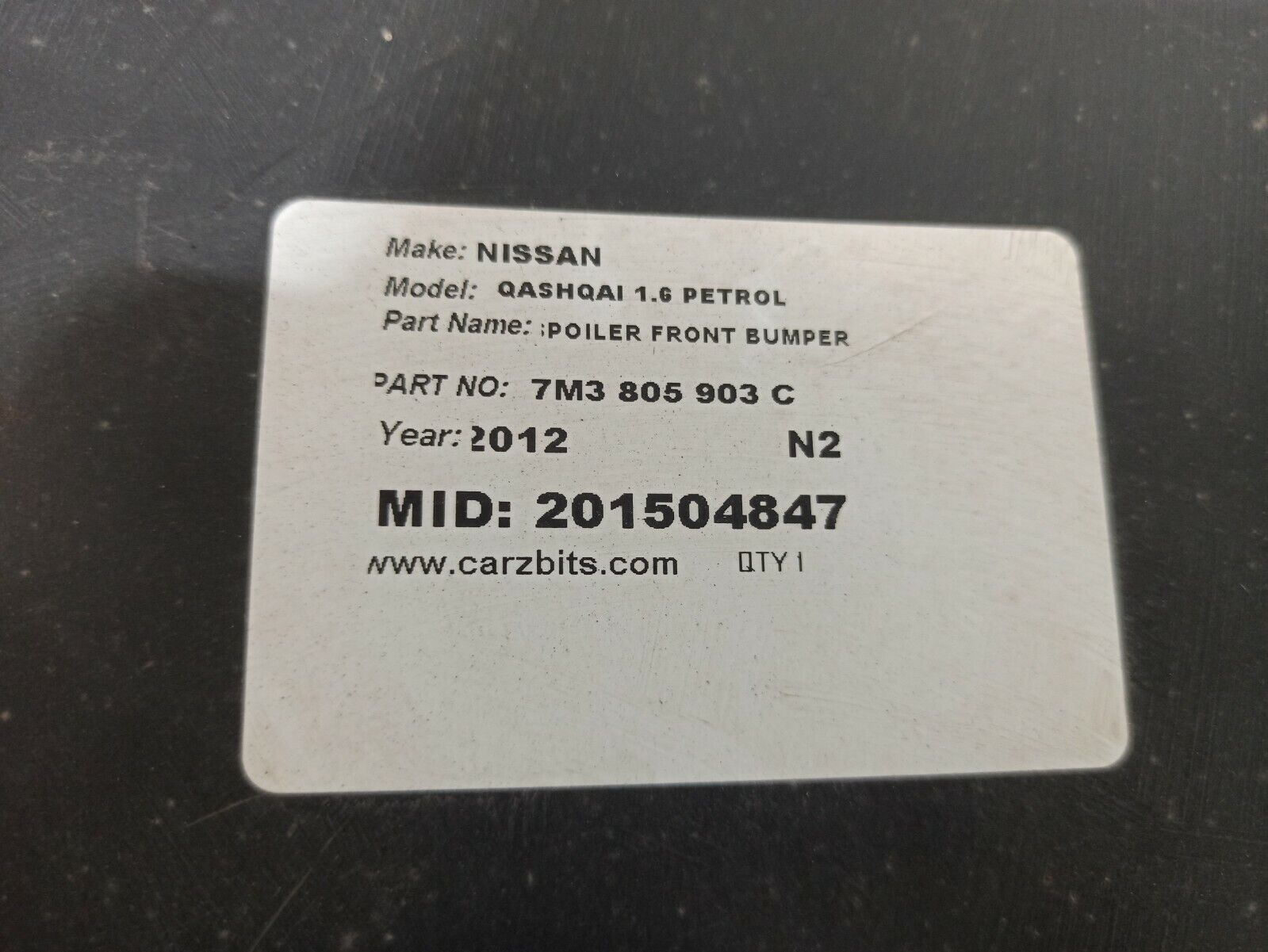 Nissan Qashqai 2012 1.6 Petrol Front Bumper Spoiler Trim Passenger Side N/S 7M3805903C